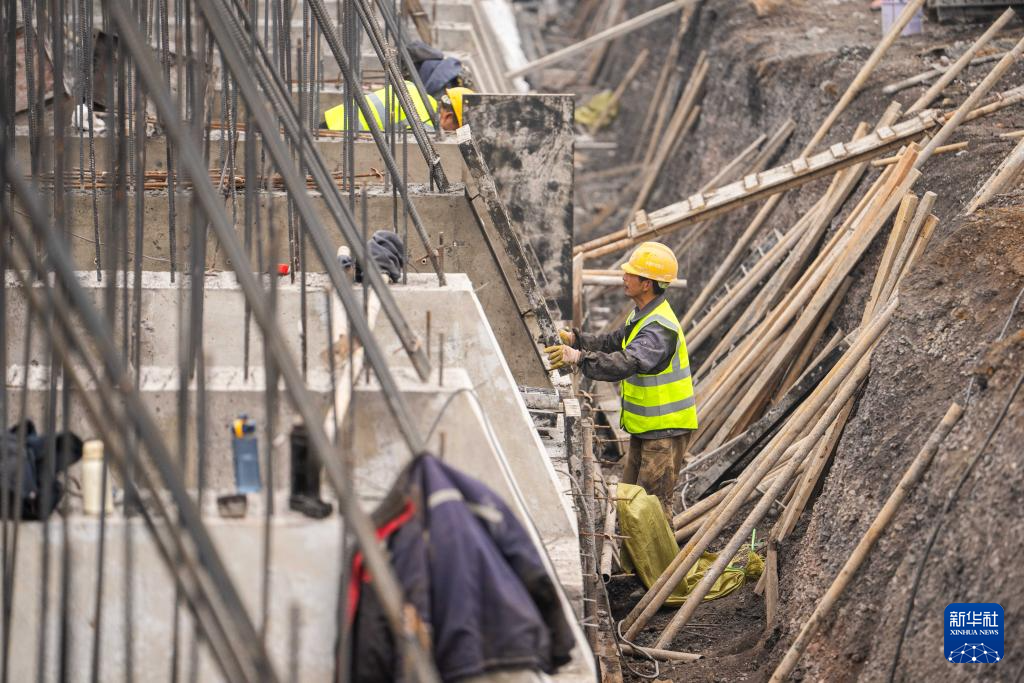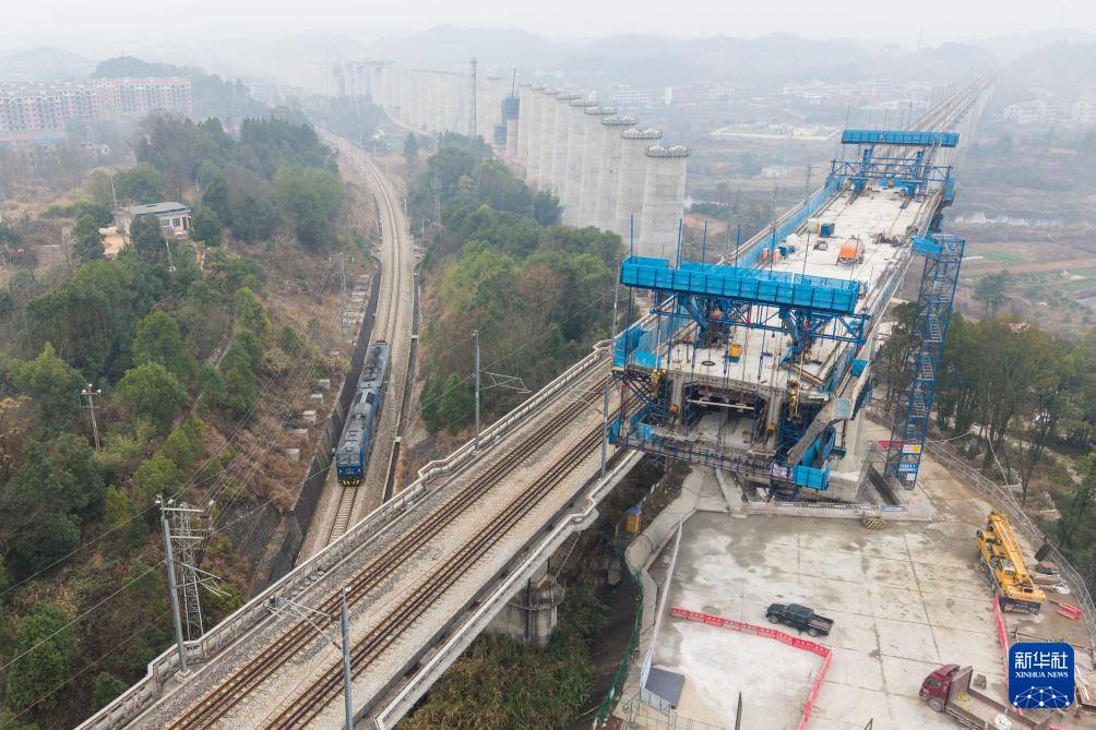 春节临近,在湖南邵(阳)永(州)高铁建设工地,施工人员抢抓工期,确保重点工程建设进度有序推进。