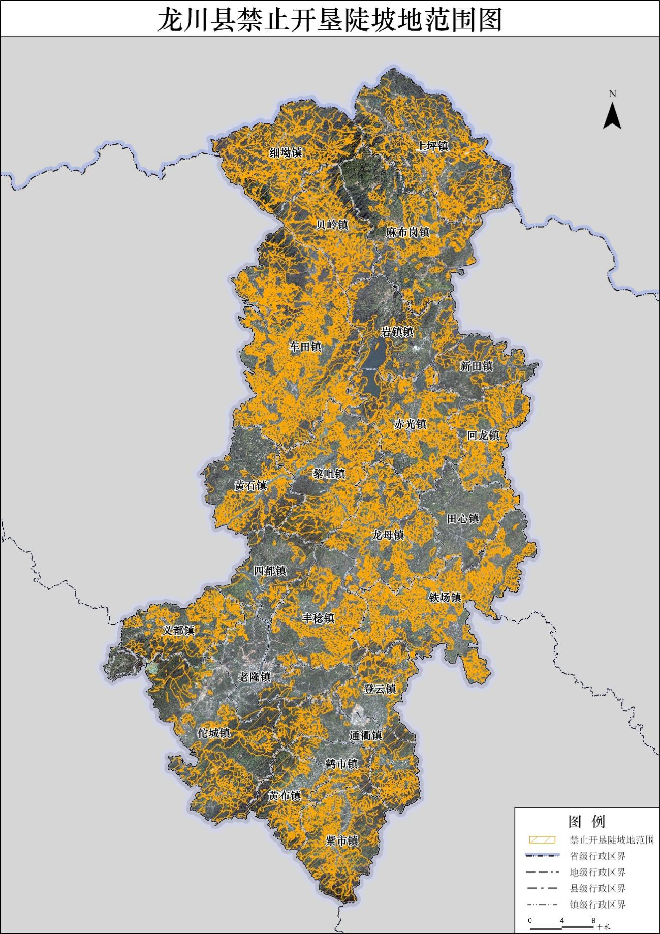 一、全县禁止开垦陡坡地面积划定为1419.97平方公里,在全县各镇均有分布,具体分布范围和面积见附件。