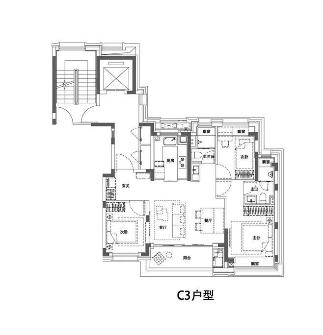 同面积段产品中难得的方正户型,无任何面积浪费;双卧室套房兼顾家庭成员和宾客的起居需求!