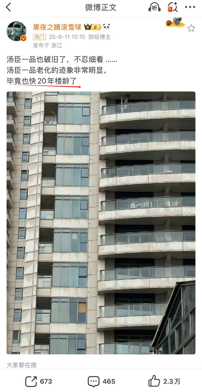 例如前不久被推上热搜的上海顶豪代表【汤臣一品】,就因外立面采用的铝板(容易老化显老),英雄迟暮!