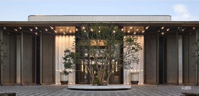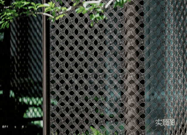 踏入社区,方胜纹金属格栅如鎏金织锦描摹景墙界面,蜿蜒连结成同心之链,暗喻“同舟共济”的东方情谊。玉石镶嵌的天珺标识辉映其间,为归家之路烙下第一重尊荣印记。